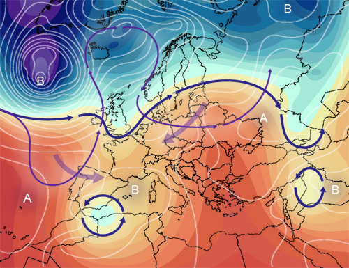 Il momento in cui questo inizio d’inverno indecente proverà a cambiare marcia assumendo connotati più consoni non è ancora possibile stabilirlo con certezza. Certe proiezioni natalizie o post-natalizie che incoraggiano qualcuno a stabilire che avremo una certa svolta sono ancora troppo lontane e, di conseguenza, poco affidabili. E non solo, giacché in tal senso sussiste ancora anche una certa difformità tra i modelli. Di sicuro abbiamo che nel corso della prossima settimana l’atlantico, in questo momento assai poco incisivo ed associato ad infiltrazioni che sbattono contro il promontorio anticiclonico scivolando lungo gibilterra e sino al marocco occidentale, proverà ad essere più influente; e ci proverà con una saccatura, per come indicato dal disegno della situazione prevista intorno ai giorni 16/17, non lontana dalla possibilità di creare un peggioramento, soprattutto lungo il profilo occidentale della penisola. La faccenda maturerà senza, comunque, e sempre per merito di un contesto con promontorio anticiclonico duro a morire, un vero e proprio sfondamento da occidente, tant’è che, anche in questo caso, la relativa depressione andrà poi scivolando nell’entroterra africano piuttosto che traslare verso levante. Andando poi oltre o molto oltre, provando ad esaminare certe proiezioni di lungo termine alquanto stimolanti ma ancora piuttosto vaghe nella possibilità di chiarire l’ipotesi di una vera svolta in senso invernale, si può prendere ad es. l’ultima proiezione di ECMWF e relativa ad inizio terza decade, la quale mostra, con il supporto nel disegno della simbologia relativa alla evoluzione della disposizione di una isoipsa di riferimento (frecce più grandi identificative della isoipsa nei giorni 16/17 e frecce più piccole identificative della stessa isoipsa nei giorni 21/22), un tendenziale aumento dei valori barici sui mari del nord a tutte le quote. Ed un aumento che, effettivamente, può anche stimolare certe fantasie freddiste corrispondenti all’intravedere, in detto aumento, la possibilità di richiami di saccature fredde dall’europa orientale che interagiscono con infiltrazioni oceaniche alle basse latitudini e che, pertanto, possono creare allettanti e mediterranee condizioni da rex o da dipole blocking. Magari!! E’ altresì, però, assai chiaro che stiamo parlando di qualcosa che sarà, e molto, da riesaminare, oltretutto nei suoi possibili e vari risvolti, nel prossimo futuro…