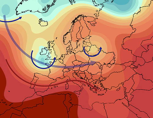 Dal punto di vista delle onde di calore della clemenza del mese in corso parlano in pochi. I titoli prevalenti sono quelli ancorati al solito stucchevole luogo comune dell’anticiclone africano e del caldo. Ma che un pò di caldo a metà luglio faccia notizia mi sembra alquanto grottesco; per non parlare di come il termine di anticiclone africano ce lo ritroviamo anche nel piatto del quotidiano. Dovrebbe invece fare notizia il fatto che luglio ha visto e vedrà il corso di una estate normale e, persino, con qualche disturbo. Ma non la fa perché, forse, sarebbe informazione poco attraente. Destreggiarsi nella informazione di oggi, di tutti i campi, che popola i media, internet, i social, è assai complicato. Molti la legittimano o la giustificano considerandola l’espressione di uno stato di democrazia e massima libertà in cui tutti dicono la loro o possono dire la loro. Sul piano teorico questo non fa una piega. Peccato che finisca, però, per corrispondere ad un bombardamento stordente, fatto molto spesso di riempimento o di inutile se non di falso o di ridicolo, ed in cui appare evidente la smania di attirare piuttosto che l’obiettivo di fare informazione seria. Pazienza. L’estate in corso da tempo e che sarà anche nei prossimi giorni è quella di un sub-tropicale presente ma non associato ad invadenze eccessive e tali da produrre ondate di caldo come quella di giugno; ed è quella di una corrente canadese o del nord-atlantico che coinvolge le latitudini medio/alte del continente lambendo, a tratti, parte della penisola. Dal punto di vista sia climatico che di struttura meteo nulla di più classico e di più assimilabile ad una stagione in linea con gli standard. Non può essere che il sub-tropicale non presenti rinforzi sul nord-africa e che non tenti, tra il transito di una saccatura ed un’altra, di espandersi e di coinvolgerci con promontori. Ma detti atteggiamenti tendono a rientrare nell’ambito di un quadro che vede questi promontori come onde mobili e che vede i massimi di pressione in quota distribuirsi non troppo verso le nostre latitudini oppure ad ovest. Una delle configurazioni cicloniche attualmente in transito sul continente è quella destinata all’europa orientale ma anche in grado di lambire l’adriatico e di orientare temporaneamente le correnti in quota da nord-ovest. A seguire è da mettere in conto il fisiologico rialzo barico di dette situazioni mobili ma anche la fase di attesa di un nuovo sistema depressionario atlantico che potrebbe coinvolgere almeno il nord-italia tra fine seconda ed inizio terza decade, in un contesto di alternanza tra fasi più calde e fasi un pò disturbate e più mitigate destinato, forse, a proseguire ulteriormente. Il disegno riferisce la situazione generale prevista in quota intorno ai giorni 19/20 e, con il supporto della simbologia, chiarisce il senso di una fase in tutto e per tutto estiva ma con componenti di flusso da estate classica o senza eccessi di caldo…