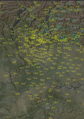Oggi invece sull’ovest Lombardia si sono avute massime comprese tra 33 e 35° , quindi 5/6° superiori alla norma , nessuna nuvolosità e nessun temporale.