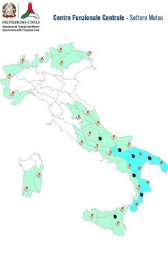 – sparse, anche a carattere di rovescio o temporale, su Puglia, Calabria e Basilicata, con quantitativi cumulati da deboli a moderati;
