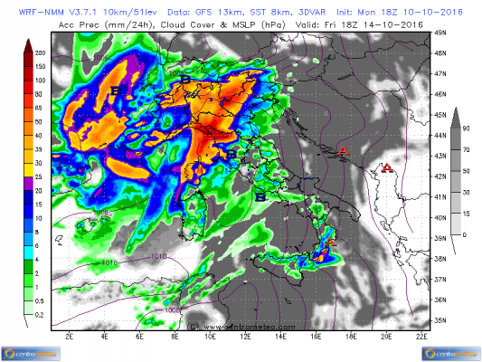 Ad oggi più coinvolte dal maltempo risultano le regioni Settentrionali, con accumuli che potranno localmente andare oltre i 80-100 mm, situazione ben diversa al Centro-Sud in quanto non ci aspettiamo fenomeni degni di nota, anche se qualche temporale può interessare le regioni che si affacciano sul Tirreno e anche la Calabria Ionica.