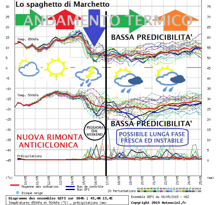 Lo spaghetto di Marchetto: Un nuovo anticiclone scalpita,ma dal weekend inizierà una fase instabile.