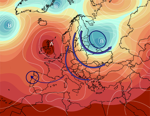 La scomparsa di Paolo Sottocorona ci tocca particolarmente per due motivi. Il primo è quello che si riferisce alla persona, a quella persona dai toni rassicuranti, intelligente, brillante, empatica. Il secondo è quello che si riferisce alla parte strettamente professionale e tecnica, ed a quella parte capace di trattare la meteo per come si deve, lontana anni luce da certo pacchiano, da certa vetrina pura, da certa approssimazione e da certi modi chiaramente votati ad attirare pubblico. Sottocorona trattava la meteo con la sobrietà e la scientificità che la stessa meteo merita, con le parole semplici che servono per farla capire al grande pubblico, con la capacità di sintesi di cui sono dotate le persone intelligenti e che hanno dominio della materia, e, a momenti, con quella sottile ironia, sempre comunque garbata e mai offensiva o presupponente, utile a mettere in chiaro certi concetti o a stabilire i confini della meteo seria. Ci ricordava un pò i modi dei grandi della vecchia meteo, come ad es. Andrea Baroni o Guido Caroselli, ed i modi di quei bollettini TV in cui era il meteorologo a spiegare la meteo ed in cui la meteo erano semplici perturbazioni, isobare e carte in quota piuttosto che clamore mediatico. Caro Paolo ci mancherai. Venendo alla situazione ed alla evoluzione ho disegnato la situazione generale prevista nel medio termine ed intorno ai giorni 12/13 per segnalare che la configurazione di confine già indicata in precedenza, tuttora in azione e che vede una certa prevalenza della figura anticiclonica ad ovest, andrà marcando ulteriormente il blocco all’atlantico. E lo farà anche spostando i massimi barici verso nord-est, sulle isole britanniche o tra isole britanniche e scandinavia, con la conseguenza della maturazione di un contesto che, in linea generale, non è mai così stabile per il mediterraneo. Tant’è che, in un disegno che tende a far prevalere l’oriente piuttosto che l’occidente, ed ovvero i richiami da levante ed i flussi antizonali, avremo un certo affondare, in direzione di metà mese, della figura depressionaria dell’europa centro-orientale, con nuove riduzioni termiche e la possibilità di destabilizzazioni, segnatamente sulle aree orientali. E’ possibile, peraltro, che possa trattarsi di qualcosa di non particolarmente eclatante, nonché di qualcosa di assai temporaneo e destinato, con la graduale scomparsa di aree anticicloniche in quelle posizioni, ad una evoluzione verso profili più zonali…