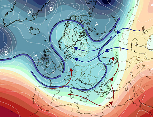 Il riscaldamento di natura antropica è nelle dimostrazioni scientifiche della scienza dei grandi istituti di livello mondiale. Pertanto la discussione con tutti coloro che sostengono il contrario non si pone. Una volta, sul treno che mi portava all’università, mentre stavo leggendo un importante libro di genetica ci fu un ragazzo che mi indicò quella roba lì come fuffa e roba inutile. Non lo considerai. Pensate che ogni dialogo o discussione con questa persona avrebbe sortito effetti di qualche tipo o che, in detta persona, avrei instillato almeno qualche minimo dubbio? Non credo che chi scrive o sostiene cose che non hanno basi scientifiche, in qualunque campo, e che si oppone alla scienza dimostrata, meriti considerazione o dialogo. D’altra parte, almeno per quanto riguarda la mia esperienza, il più delle volte si tratta di soggetti che, non solo dimostrano un atteggiamento marcatamente pregiudiziale, ma tendono ad avere un atteggiamento irrispettoso, deridente, non curandosi in alcun modo della realtà che li sconfessa, che essa sia fatta di semplici esperti o sia fatta di premi Nobel. Oltretutto, poi, nel merito del clima e del GW, non credo proprio che i ricercatori, i grandi scienziati del clima, i relativi premi Nobel, enti o istituti come IPCC, NOAA, AEA, CNR-ISAC, WMO, ecc. ecc. vivano di incubi notturni perché esistono alcuni movimenti o alcune persone che professano teorie contro. C’è, poi, anche da dire che, internet e social, dove si può scrivere qualunque cosa, o quasi, in libertà, un certo desiderio di protagonismo, associato al mostrarsi alternativi, lo assecondino ben bene, anche o soprattutto per il fatto che di gente che interagisce su argomenti di cui non sa nulla, o che crede a cose campate in aria, ovvero senza un minimo di base scientifica, ce n’è a volontà. Ovvio che chi sostiene che non esiste il GW antropico, chi prevede grandi freddi che poi, puntualmente, non arrivano, o chi sostiene teorie alternative a quello che sostengono i premi Nobel, continuerà a farlo. E che lo faccia. Ma, riguardo all’influenza che può avere sugli scienziati e a livello degli istituti di cui sopra, può tranquillamente mettersi l’anima in pace, credo. Ed il tempo in corso di questo fine gennaio? Beh, lo abbiamo già detto in precedenza. E’ un tempo più da autunno che da inverno, e lo sarà ancora per giorni, con il freddo che non ci cura neanche di striscio; e questo dopo che benpensanti, esperti e studiosi avevano, a più riprese, indicato che l’ultima decade del mese sarebbe stata da freddo artico. Ma pensate che gli stessi benpensanti, appena vedranno forecast a 12 giorni con la possibilità di afflussi freddi, non tornino alla carica con titoloni da urlo? Lo faranno, lo faranno. Intanto ecco il mio disegno, che illustra, a grandi linee, la situazione generale prevista a fine mese, dove si può apprezzare la fisionomia di una tipica situazione variabile/perturbata di netta e solida matrice oceanica. Ne usciremo da questa fisionomia, e quando? Beh, difficile dirlo. Le proiezioni di lungo termine lasciano il tempo che trovano, ma se diamo loro un minimo di credito, sulla base di quello che dicono certi importanti istituti al momento, dobbiamo considerare la possibilità di un ulteriore allontanamento del freddo ed un subentrare di flussi di natura, magari meno instabile, ma ancora più meridionale…