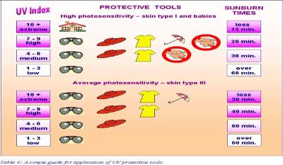 Tanto più il tessuto è chiaro, meno ha la capacità di trattenere la radiazione. Così come stare sotto l’ombrellone non significa proteggersi perché la radiazione solare è riflessa dalla sabbia. E che dire dei costumi in nylon e lycra? Se bagnati, sono completamente “trasparenti” alla radiazione. Novità, però! Da qualche anno si stanno mettendo a punto dei nuovi tessuti che riescono ad assorbire i raggi solari. Ad esempio, nella viscosa sono stati inclusi dei bloccanti UV e delle molecole di ceramica a tal punto che il suo “fattore di protezione” è di 60. Da ora in poi, occhio all’etichetta sui vestiti! Infatti, è stato creato uno standard internazionale di misura (UV Standard 801) che garantisce una protezione quasi totale dei raggi nocivi.