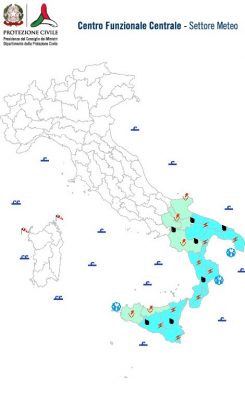 – sparse, anche a carattere di rovesci o temporale, sui restanti settori di Sicilia e Calabria, su Basilicata ionica e Puglia centrale, con quantitativi cumulati da deboli a moderati;