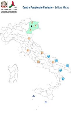 Precipitazioni: sparse, a prevalente carattere di rovescio o temporale, su Veneto e Friuli Venezia Giulia, con quantitativi cumulati deboli, fino a localmente moderati sul Friuli Venezia Giulia.