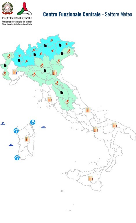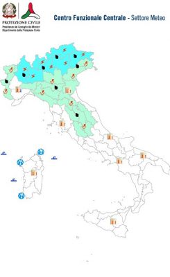 – da isolate a sparse, anche a carattere di rovescio o temporale, su resto di Lombardia e Triveneto, su Valle d’Aosta, Piemonte occidentale e pianura emiliana, con quantitativi cumulati da deboli a puntualmente moderati;