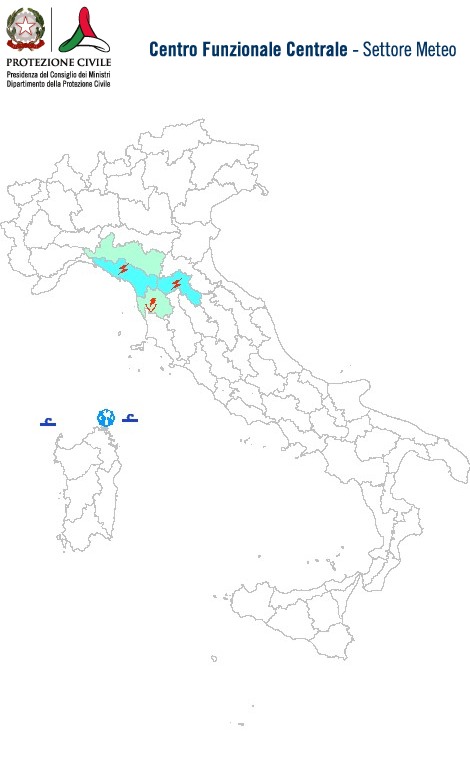 Precipitazioni: sparse, anche a carattere di rovescio o temporale, su Liguria di levante e Toscana centro-settentrionale, con quantitativi cumulati da deboli a puntualmente moderati.