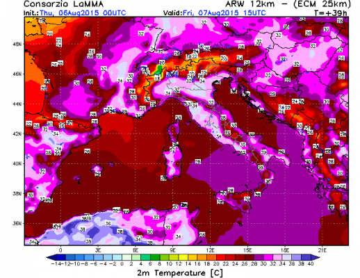 PREVISIONI METEO ITALIA PER DOMANI 7 AGOSTO 2015:Molto Caldo nei Prossimi giorni, con punte di 35°C sulle Coste, fino ai possibili 38°C delle Pianure. Instabilità come spiegato precedentemente nella giornata di Sabato. Poi dal giorno 11 Agosto probabile incremento dell’instabilità con lieve calo termico specie nei giorni di ferragosto quando si potrebbe avere maltempo più deciso e intenso.