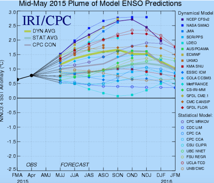 E’ uscito l’ultimo bollettino sull’ENSO. Vi è una conferma circa l’avvento del fenomeno, nel bollettino si da ormai al 90% la possibilità che si consolidi nei mesi a venire la tendenza e si quantificano all’85% le probabilità che perduri per tutto l’inverno 2015/2016, la magnitudo è prevista strong. Inverno e autunno ipotecati? Quali implicazioni per il clima mediterraneo? Per l’estate in corso quasi nessuna, diverso il discorso per l’autunno inverno, se la previsione verrà confermata, ma non è affatto certo, si potrebbero verificare le condizioni per una prossima stagione sottotono anche se è davvero prematuro parlarne ora, tuttavia la QBO è prevista virare in positivo e con il fenomeno ENSO previsto gli auspici per il prossimo inverno non sono dei migliori. Ma per ora concentriamoci sull’estate in partenza. Diffidate di chi prevede sulla base di questi dati un’estate rovente in stile 2003, non c’è nessuna valenza scientifica in questa previsione. Alla luce degli ultimi aggiornamenti dei modelli stagionali la tendenza è quella da noi espressa nelle stagionali ufficiali, al momento ci sentiamo di confermare un’estate calda ma temporalesca. Come già detto monitoreremo la tendenza mese per mese per aggiornare l’evoluzione dell’estate 2015.