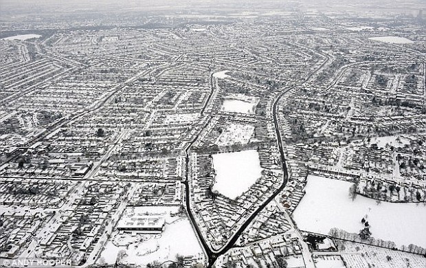Nell’immagine l’area a sud di Londra completamente innevata il 19 Dicembre 2010, tratta da Daily Mail.