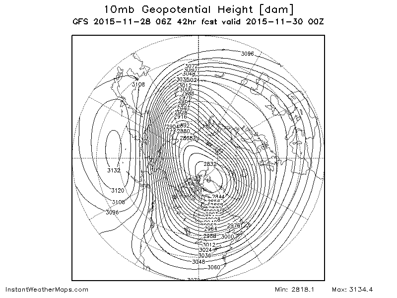 Fig.1 Si nota una wave 1 che per la stagione presenta una elevata lunghezza d’onda e discreta stazionarietà con vortice ellitticizzato.