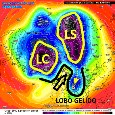 Il Vortice Polare, in ossequio alla legge di B&D, è in continuo rafforzamento, sebbene nei prossimi giorni si andrà ad assistere, nelle previsioni di tutti i modelli, ma in particolare di quello americano, a un vistoso displacment in area euroasiatica (isolamento del lobo siberiano, LS, fig.2).