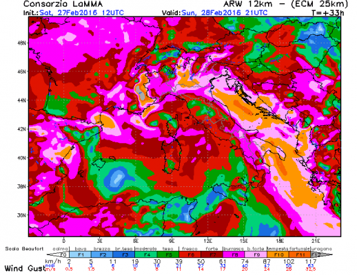 •DOMENICA 28 FEBBRAIO:Maltempo su tutta la Regione, avremo piogge già al mattino moderate, sulla Costa e sul Triestino, abbondanti o Intense sulla parte Occidentale della Regione, piogge moderate sul resto della parte Orientale, nel corso della giornata non escludo una possibile tregua veloce dalle piogge, successivamente le piogge torneranno ad intensificarsi. Neve a 700 metri sulle Alpi e sulle Pre-Alpi più interne, mentre nevicherà a 1000 metri sulle Pre-Alpi più vicine alle Pianure. Attenzione ai Venti che saranno Sostenuti di Bora al mattino e al pomeriggio, forti con raffiche di Bora oltre i 100 km/h sulla Costa e sul Triestino oltre i 50 km/h sulle Pianure.