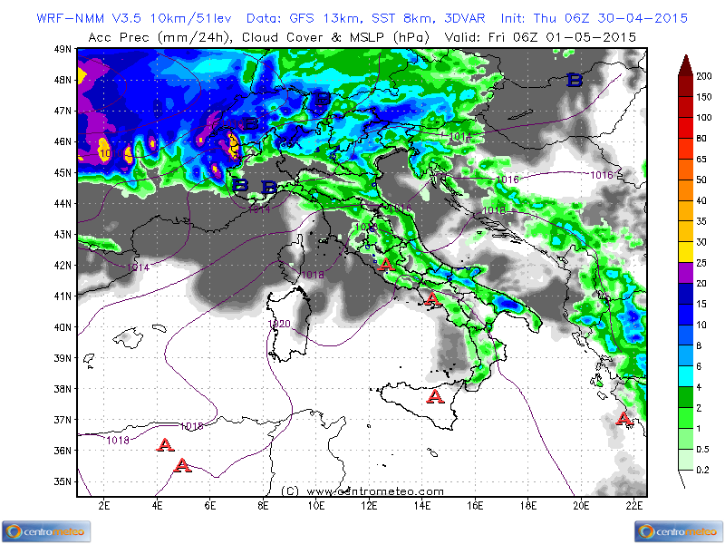 PREVISIONI PER I PROSSIMI 6 GIORNI DAL 1 AL 6 MAGGIO 2015