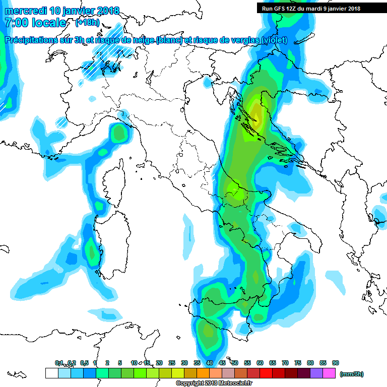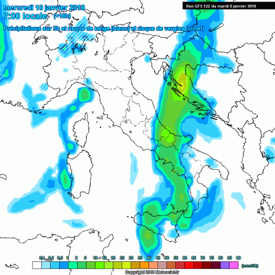 Mercoledì 10 Gennaio 2018 piogge e rovesci si concentreranno al Sud e parte del Centro, Tempo migliore sul Versante Tirrenico, Sardegna e al Nord.