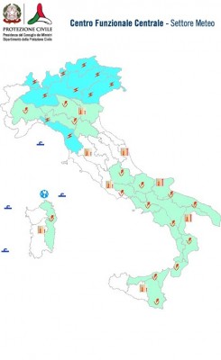 In particolare, l’avviso prevede dal pomeriggio di oggi, venerdì 24 luglio, precipitazioni, a prevalente carattere di rovescio o temporale, su Piemonte, Lombardia, Veneto, Provincia Autonoma di Bolzano e Friuli Venezia Giulia. I fenomeni saranno accompagnati da rovesci di forte intensità, frequente attività elettrica, forti raffiche di vento e locali grandinate.