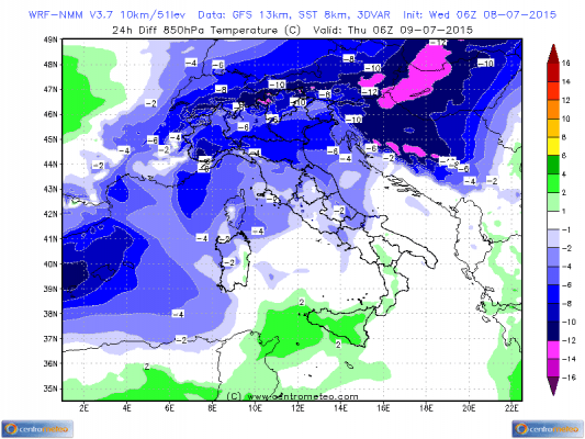 TEMPERATURE:Minime e Massime in calo sul Nord e sulle Marche, Abruzzo e Sardegna, con calo maggiore delle Massime e fine del caldo intenso di questi giorni. Temperature stazionarie sul resto del Paese, con caldo ancora sull’entroterra della Puglia, sulla Basilicata, e sulla Sicilia Orientale.