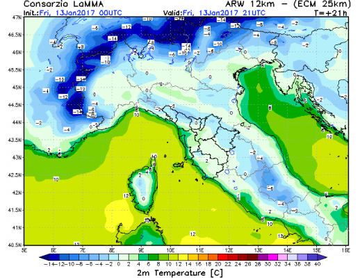 Richiamo mite, fino a questa sera, niente neve, gelo, ma temperature ancora elevate. Una volta e solo quando entra la Bora, le temperature inizieranno a scendere di diversi gradi, e solo in quel caso si potranno avere nevicate sul Carso e probabilmente anche in città. Le raffiche di Bora potranno raggiungere i 60/80 km/h, e saranno piuttosto freddi, visto che nello stesso tempo entrerà aria fredda. Quindi finora clima mite, Nebbie e pioviggini.. Dalla sera le condizioni meteo peggioreranno e proprio in quelle ore si verificheranno nello stesso tempo, Intensificazione dei Venti di Bora, precipitazioni Nevose, con pericolo di Ghiaccio al suolo, specie sul Carso, ma non da escludere anche a Trieste Città, e sulla Pianura tutto questo è accompagnato da una nuova diminuzione delle temperature.