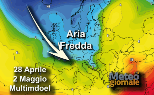 L’aria fredda associata alla saccatura nord-atlantica penetrerà sul nostro a cavallo dei due mesi primaverili. Le temperature alla quota strategica di 850 hPa caleranno anche di 7/8°C, favorendo il ritorno della neve a quote intorno ai 1500 metri. Questi forti sbalzi termici sono tipici della Primavera, d’altra parte.